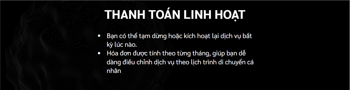 | Cách thanh toán | Theo tháng, không ràng buộc hợp đồng dài hạn |